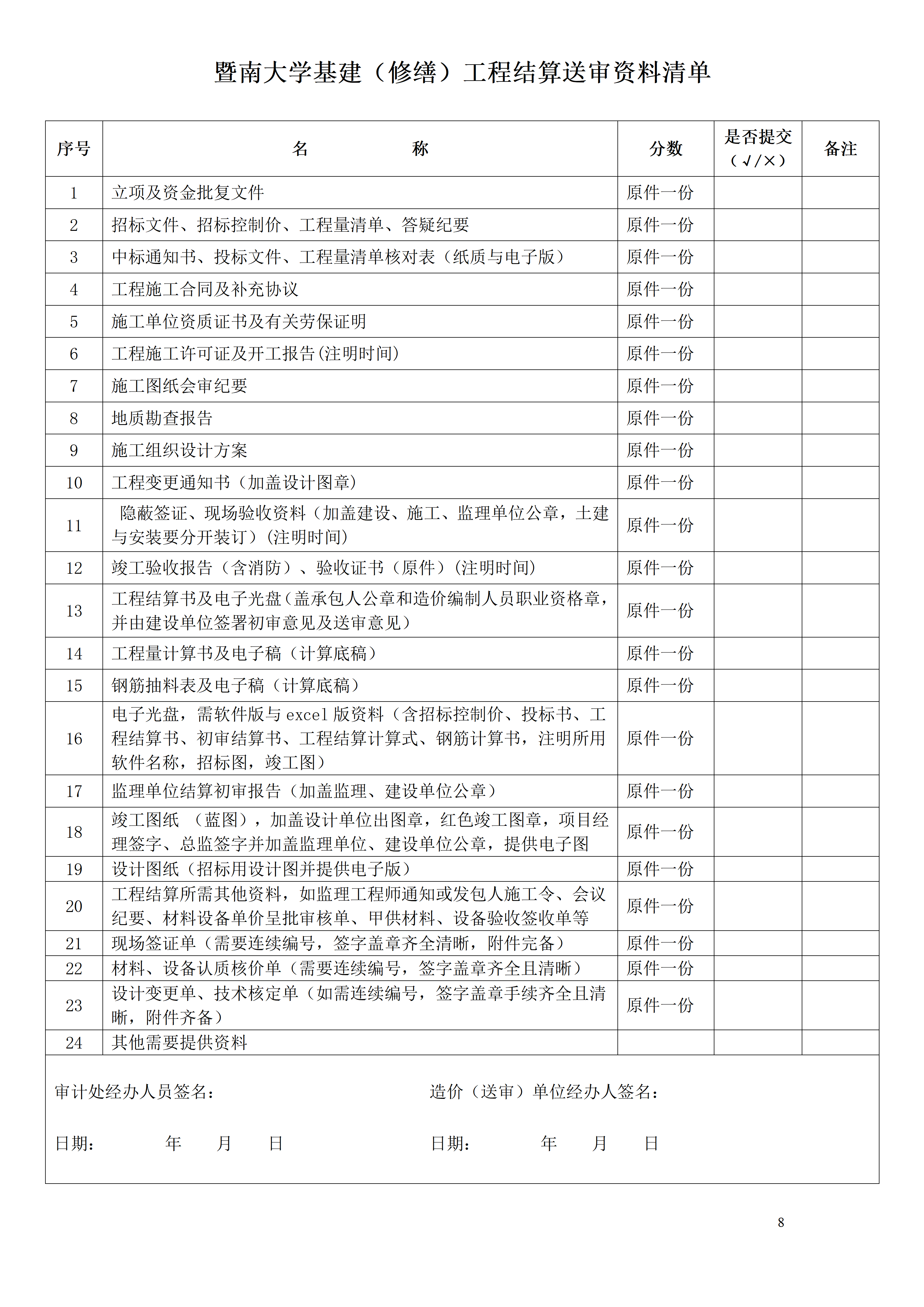 基建审计资料清单